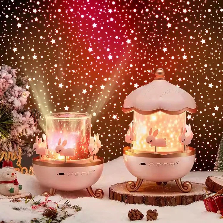 چراغ خواب کاروسل موزیکال طرح چرخ و فلک مدل بلوتوثی یک چراغ خواب بلوتوثی بوده که با الهام از چرخ و فلک ساخته شده است. این چراغ خواب دارای با اتصال به بلوتوث دستگاه ها، آهنگ پخش می کند تا خواب آرام تری داشته باشید؛ همچنین نورپردازی های گوناگونی که در این چراغ خواب وجود دارد، سبب زیبایی دوچندان آن شده است. برای تغییر نورپردازی نیز می توانید دکمه آن را هر بار بزنید.